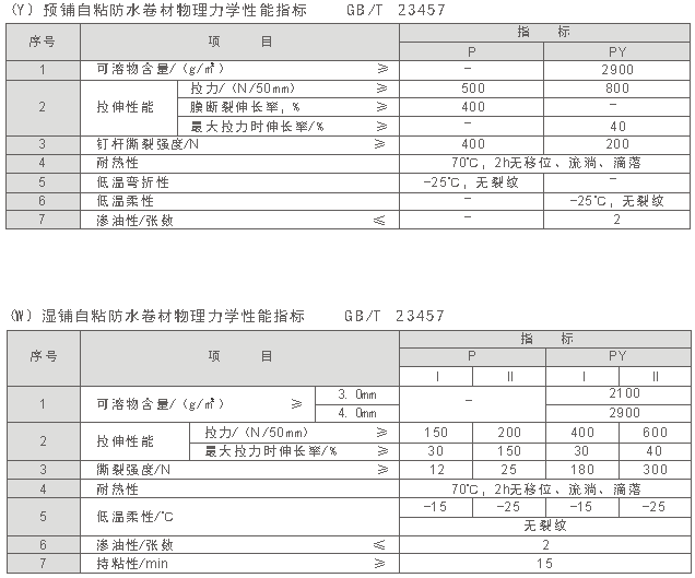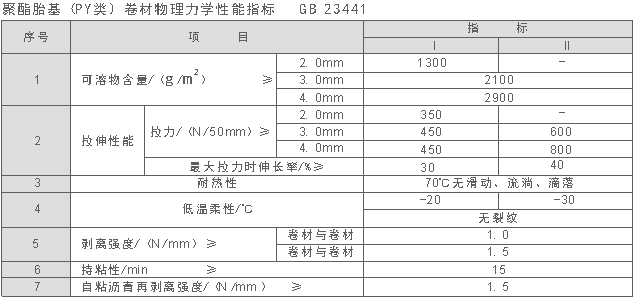 B 產(chǎn)品按性能分為Ⅰ型和Ⅱ型,卷材厚度為2.0mm的PY類(lèi)只有Ⅰ型。