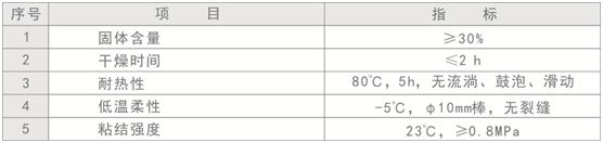 高聚物改性瀝青基層處理劑的物理力學(xué)性能指標(biāo)符合TBT2965《鐵路混凝土橋面防水層技術(shù)條件》的要求(見下表)