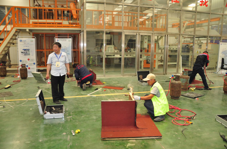 此次競(jìng)賽包括改性瀝青防水卷材施工(單人賽)、高分子卷材施工(單人賽)、噴涂施工(雙人賽)三項(xiàng)施工技能。