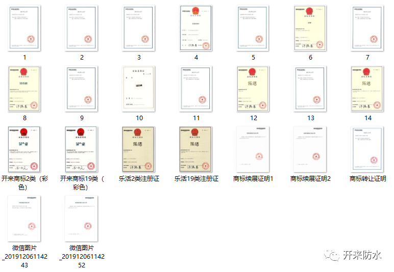 開來實(shí)施品牌戰(zhàn)略,不斷提升品牌形象,4個(gè)注冊(cè)商標(biāo)分別用于工程裝系列防水材料、家裝系列防水材料、定制系列防水材料以及特種系列防水材料的應(yīng)用,品牌群落知名度在業(yè)內(nèi)迅速提高。